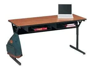 Bretford CD3521-GMQ Adjustable Gray Mist Student Desk with Book Bag Hooks