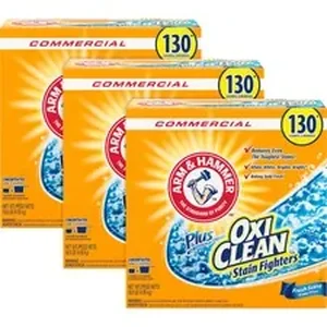 Arm & Hammer laundry detergent gets your whites whiter and your brights brighter. Reformulated with the power of OxiClean stain-fighters, it packs more cleaning power in every scoop. Detergent is also made with real Arm & Hammer Activated Baking Soda. Its deep-cleaning formula helps remove tough stains and odors and prevent fading. Box of powder detergent yields 130 loads.