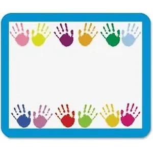 These convenient, self-adhesive name tags are ideal for labeling, reminders, calendar and homework notes, and more. Each name tag measures 3" x 2-1/2" so you have room to write between the handprints on the top and bottom. They are recommended for children in preschool through fifth-grade.