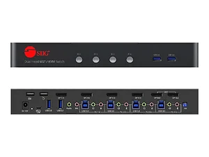 4 port DisplayPort 8K MST Dual-Head KVM Switch, Allows you to control 4 DisplayPort 8K computers using one keyboard and mouse and support to separate for dual head 4K60Hz DisplayPort via MST feature output, DP 1.4/8K@30, 32.4Gbps, 4 USB 3.2 Gen-1 ports, 3.5mm Phone & Mic Jacks, Switch Button, Hotkeys, Metal Housing, TAA Compliant