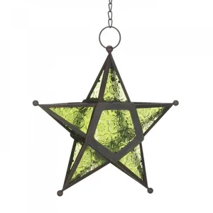 Gallery Of Light 10017756 Celestial Green Glass Star Lantern for Candle Lighting