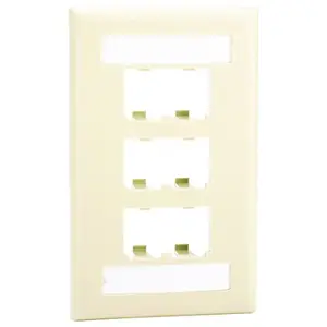 The Panduit Classic Mini-Com Faceplate is designed for use in various networking applications. This electric ivory faceplate accommodates up to six ports and includes a label and label cover for easy identification. Its compact 1-gang design makes it ideal for both commercial and residential use.