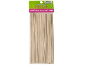 Great for a variety of craft projects, this fun 100-pack of Natural Wood Craft Sticks can be painted, decorated, glued onto surfaces, built into structures and more. Sticks measure approximately 8" long. Comes packaged in a poly bag with a header card. Package measures approximately 10.5" x 4".