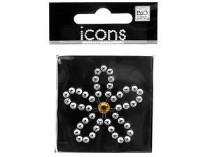 Add a touch of sparkle to your projects with the Sparkling Rhinestone Floral Decal Sticker. This eye-catching sticker features clear and yellow plastic rhinestones shaped like a flower, perfect for enhancing your creative endeavors.