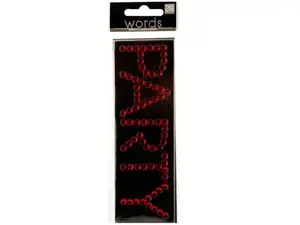 Elevate your crafting projects with the Bling Party Rhinestone Sticker. This eye-catching sticker features vibrant red plastic rhinestones that spell out the word PARTY, making it a perfect embellishment for various creative endeavors.