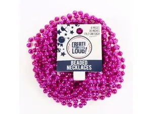 Featuring a vibrant hot pink metallic finish, they are ideal for birthday celebrations, 80's themed nights, and bridal events. Each set contains 8 necklaces, each measuring 30 inches long, and they come nicely packaged on a wrap hanging panel for easy display.