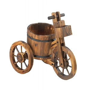 Add a touch of country charm to your garden with this delightful wooden tricycle planter. Perfect for showcasing your favorite plants, this tricycle design features a rustic rain barrel bucket that enhances any outdoor decor.