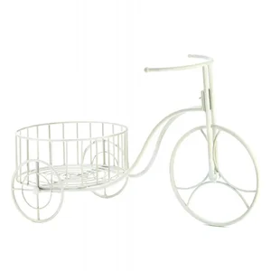 Add a touch of rustic charm to your home or garden with this delightful white metal tricycle planter. Perfect for showcasing your favorite potted plants, this whimsical piece serves as a lovely decoration both indoors and outdoors.