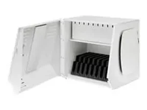 Securely store and charge your tablets and Chromebooks with this stylish locking cabinet. Finished in a sleek ice white, it blends seamlessly into any educational or office environment. Designed for optimal organization, this cabinet ensures that your devices are both safe and easily accessible.