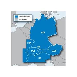 Coverage:Detailed maps of Germany, Austria, Switzerland, Liechtenstein, Northern Italy and Eastern France.