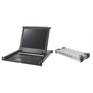 The ATEN 17" LCD Integrated Console and 8-Port KVM Bundle is designed for efficiency in managing multiple servers from a single point. This compact unit features a high-resolution TFT display, an integrated keyboard, and a touchpad all within a space-saving 1U rack-mounted housing.