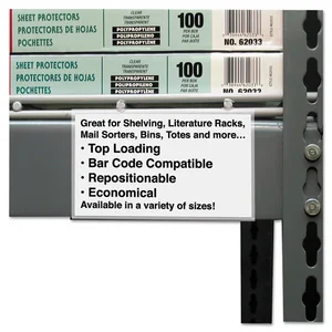 Enhance your organization with our Clear Self-Adhesive Label Holders, designed for easy top loading. Each holder measures 1" x 6" and comes in a convenient pack of 50, perfect for various labeling needs.