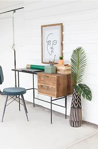 Kalalou CLL2488 Stylish Metal Desk with Eco-Friendly Elm Wood Drawers