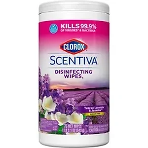Clean and disinfect your home while enjoying the captivating, long-lasting scent of Tuscan Lavender and Jasmine by using these bleach-free, all-in-one cleaning wipes. Clorox Scentiva Disinfecting Wipes kill 99.9 percent of viruses and bacteria, including the COVID-19 Virus, on hard, nonporous surfaces in 15 seconds with the power of Clorox clean (when used as directed). These multi-surface cleaning wipes feature a clear-drying formula that powers through grease, soap scum and grime so you can tackle any surface with confidence. Clorox Scentiva Disinfecting Wipes even prevent bacteria growth for up to 24 hours on nonfood-contact surfaces. Safely wipe down garbage cans, sinks, toys, remotes and appliances, or clean up car spills with these nonbleach sanitizing wipes. This canister of disposable, antibacterial wipes features a Tuscan Lavender and Jasmine scent to freshen your home and inspire the senses.