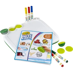 Unleash your child's creativity with the CRAYOLA Color Wonder Art Desk! Designed for mess-free fun, this art desk includes special stampers and coloring materials that only work on Color Wonder paper, leaving no stains on clothes or surfaces. It's the perfect way for little artists to express themselves while keeping your home clean.