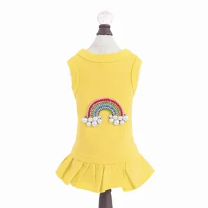 Dress your furry friend in style with our Colorful Cotton Rainbow Dress, perfect for special occasions or everyday wear. This beautiful dress features a vibrant yellow color and is made from soft, breathable cotton to keep your dog comfortable.