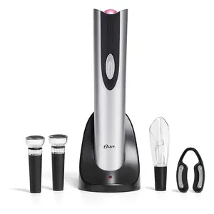 A good wine is meant to be sipped and savored, and the Oster 4-in-1 Wine Savoring Experience helps from beginning to end. This 4-in-1 wine kit includes a cordless, rechargeable electric wine opener, 1 aerating wine pourer, 2 vacuum wine stoppers, and a foil cutter: everything you need to open, decant, enjoy, and even store a bottle of wine.