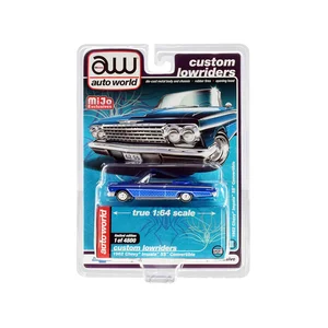 This stunning diecast model of the 1962 Chevrolet Impala SS Convertible in Blue Metallic is a must-have for car enthusiasts and collectors. Limited to only 4800 pieces worldwide, this 1/64 scale model showcases remarkable attention to detail.