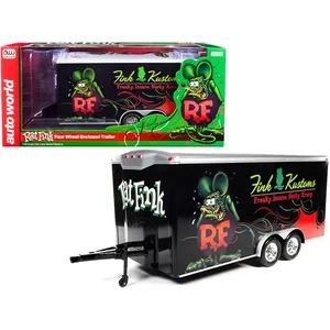 This exquisite 1/18 scale model of the Rat Fink Enclosed Car Trailer captures the essence of classic automotive culture. With its striking black finish adorned with vibrant graphics, this trailer is perfect for any car model enthusiast. It features a range of intricate details, from chrome wheels to a functional rear ramp, making it a must-have for collectors and hobbyists alike.