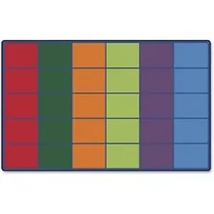 Seating rug features colorful rows that accommodate up to 30 children in a classroom. Each section designates the perfect seating area to handle your classroom organization needs. Bright colors and large spaces make this rug a perfect fit for any age or grade level.