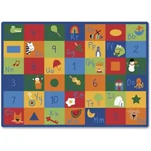 Rug with a learning blocks theme is the perfect centerpiece to any room. Productive design is great for learning activities ranging from literacy, shape and number-recognition as well as more advanced matching skills. Rectangular rug is safe for children of all ages.