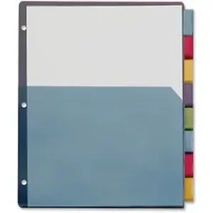 Extra-tough poly dividers with pockets outperform regular paper pockets for binders. They will not fray or tear out of rings. Scratch-resistant, transfer-safe poly will not damage photos or transfer inks or toners. Three-hole punched edge easily fits into standard three-ring binders. Each colorful divider has a single pocket that holds up to 30 sheets. Extra-large insertable tabs are designed so the tab inserts won't fall out. Set of dividers includes paper tab inserts and eight tabs in staggered positions for easy identification and access.