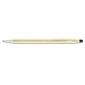 Versatile ballpoint pen accommodates a wide variety of uses. Classic slim silhouette, for which the Cross design is world-renowned, has an epoxy finish with 23 karat, gold-plated appointments. Design offers a patented, twist-action, propel/repel feature. Ballpoint pen includes one black, medium ballpoint refill.