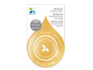Enhance your crafting projects with our Metallic Gold Semi-Gloss No Drip Stencil Paint. Ideal for all surfaces, this paint provides full coverage with its high-quality acrylic formula. The convenient 0.84 oz jar makes it easy to handle and apply, ensuring a mess-free experience. Non-toxic and safe for use, it's perfect for a variety of artistic applications.