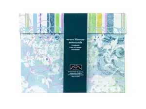 Brighten someone's day with the Azure Blooms Elegant Note Card Set. Perfect for sending heartfelt messages, this set features beautifully designed cards that capture the essence of nature's beauty. Each box contains 4 blank note cards adorned with exquisite blue and green floral motifs, allowing for personal expression in every correspondence.