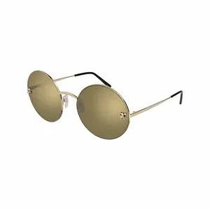 Cartier CT0022S-002 Gold Round Gold Mirror Lens Women's Metal Sunglasses Cartier CT0022S-002 Sunglasses includes box, case, paperwork and 30 day returns. The Cartier CT0022S-002 Gold Round Gold Mirror Lens Women's Metal Sunglasses are part of the latest Cartier collection carefully crafted for wo men . This elegant semi-rimless model reflects the latest trends in contemporary designer eyewear and its round shape makes Cartier CT0022S-002 sunglasses the perfect choice especially for squared and heart-shaped faces . Features: Brand: Cartier Model Number: CT0022S-002 Gender: Women Frame Material: Metal Frame Color: Gold Lens Color: Gold Mirror Frame Shape: Round Lens Size: 58mm Bridge Size: 21mm Temple Size: 140mm Cartier CT0022S-002 MSRP: $1000