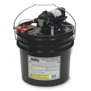 Oil Change Pump w/3.5 Gallon Bucket - 12 VDC, 1.5 GPMIncorporating SHURFLO's advanced motor technology that includes thermal overload protection, general utility pumps are self-priming, easy to install and are extremely versatile-perfect for a variety of uses including winterizing, oil changing and liquid transfer. 1 Year Warranty.