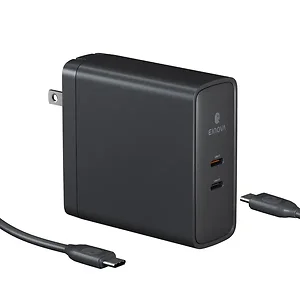 • 2 powerful USB-C(R) ports - when used individually - 140-watt PD PPS 3.1 and 100-watt PD PPS 3.0 max ;• Dual laptop charger (65 watt + 65 watt simultaneous dual port output);• Removable 140-watt USB-C(R) cable (6 ft.) included;• Foldable prongs and compact dimensions, ideal for travel;• Power Delivery PPS tailors voltage and current output to the connected device;• Built on GaN technology for superior energy efficiency and charging performance;• Includes user manual;