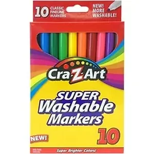 Super Washable Finetip Markers will lend creativity to any project. Ideal for children, they are nontoxic and washable for easier cleanup. Fine tip can draw a fine or broad line; bright and classic colors. Markers come in 10 bright, classic colors.