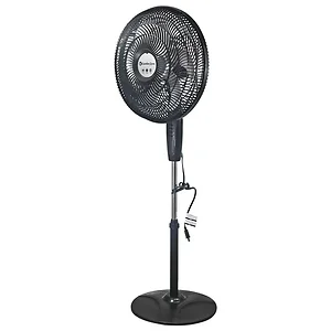 • 90 watts of power;• 3 speeds on push-button control panel, 6 silver blades with 16.26 in. diameter, 80deg of oscillation, and 90deg tilt adjustment for customized comfort; provides up to 30% more air flow than alternatives;• Triple-zone, tri-curve grille effectively eliminates turbulence for up to 20% less noise for restful sleep; ideal for bedrooms, nurseries, or any place where quiet is appreciated;• Highly efficient all-copper motor dishes out up to 5.9 m/s of air speed;• Height-adjustable up to 53.15 in.;• Built-in night-light for bedtime illumination;• Can be wall mounted to save space;• 5 ft. cord;• UL(R), ETL(R), SAA(R), CE(R), CSA(R), and NOM(R) listed;• Black;