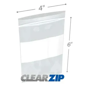International Plastics Inc CZW60406 Heavy Duty 6 Mil Clearzip Lock Top Bags 4 x 6 - White Block