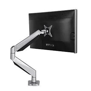 This premium single arm computer monitor mount offers an attractive way to display one monitor while saving the most amount of desk space. The Arm easily adjust , allowing you to work in a more comfortable, ergonomically correct position. Staring at a computer screen that's not eye level can cause neck and eye strain, as well as painful back problems. Our patented, high performance monitor mount offers a wide range of features that our competitors don't offer. You will notice the difference right away. Quality craftsmanship, impressive functionality and unparalleled design raise the bar for this mount to the highest level.. Features:. 1. Extend or retract monitor arm; rotate monitor to landscape or portrait mode. 2. Gas spring hovering system gracefully adjusts monitor height. 3. Aircraft-grade aluminum arm features a stylish anti-scratch surface. 4. The arm rotates horizontally 180 Degree. 5. Front-loading ports for audio, mic & USB 3.0. 6. High-quality ball joint tilts and swivels your monitor. 7. Torque control valve regulates arm movement. . Specs:. . 1. Material: aircraft-grade aluminum with injection molded plastic for cable management system. 2. Fits most 10"-34" monitors. 3. Supports monitor weight : 13.2- 33 lbs.. 4. Durable hardware supports clamp or grommet installation. Option 1: Clamp:. For desk thickness: 0.98 - 4.72 inches (25-120 mm). Option 2: Grommet:. Size of the hole: 1/3 - 2.75 inches (8.5-70 mm).. Table thickness: 0.98 - 4.72 inches (25-120 mm). . Package Includes:. 1x Heavy duty full motion single arm monitor mount. Installation hardware