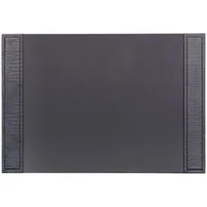 Side-rail desk pad features a crocodile embossed cowhide exterior with a faux-leather writing surface to provide a stylish way to protect your desktop from scuffs and scratches. Its smooth velveteen lining on the bottom offers excellent protection where you need it most. Desk pad can be safely used with blotter paper.