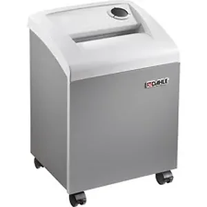 The 50114 Small Office Shredder supports the document destruction needs of busy offices with one to three users. This P-4 shredder produces a 1/8" x 1-9/16" particle size and holds up to 8 gallons of shredded waste. Oil-free shredding saves money on supplies and shred at optimal performance without the aid of oil. Trident Grip jam protection features unique cylinders that continuously grip paper in three places, pulling it through evenly and cleanly. SmartPower Energy Management saves on electrical costs as the machine automatically powers down when not in use. German-engineered, mobile shredder also offers 9-1/2" feed width, 44-decibel operation, 10 to 12-sheet capacity, lockable casters, automatic on/off and bag-full auto off. It can shred CDs, staples, paper clips and credit cards.