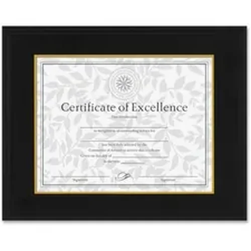 Handsome solid wood frame is great for displaying achievement certificates. Display it vertically or horizontally on the wall. Plastic front protects your important document while the charcoal and gold-tone paper mat highlights it.