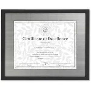This fashionable wood frame elegantly highlights your awards, certificates or photos. A beautiful brushed silver metal mat surrounds your display for a sleek presentation. The easel back allows you to display the frame on your desktop or wall. Included certificate of excellence is ready to use.