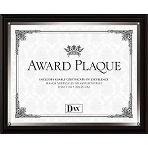 Showcase your achievement with this traditional and classic display plaque. Easily insert your documents and photos using the side-loading front cover. Clear, protective, plastic face with four decorative tacks offers a professional style. Plaque includes a usable certificate. Hang vertically or horizontally for versatile wall display.