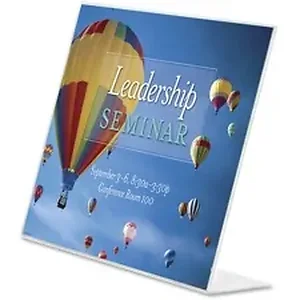 Freestanding L-frame is slightly angled to provide better visibility. Side-loading design easily accepts signs and documents. Lightweight plastic can be easily moved or repositioned to meet your needs.