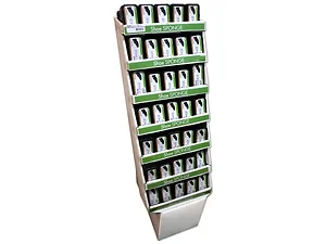 Enhance your shoe care routine with this Versatile Shoe Shine Sponge Display. Each palm-sized sponge is infused with a clear, shining liquid solution, ensuring your shoes remain glossy and well-protected. This floor display is ideal for retail settings, fitting effortlessly into tight spaces while providing a stylish presentation. With 105 sponges included, it's perfect for any color shoe.