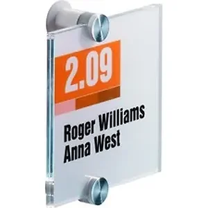 Crystal Signs provide stylish interior signage that can be updated instantly whenever tenant, faculty or staff changes occur. Transparent design allows straightforward edits and updates. Each sign includes standoff posts, two acrylic panels, two microperforated Mylar inserts, mounting hardware and a template for wall mounting. Included laser-printable Mylar inserts are sized for an exact panel fit and are microperforated for a clean tearing with no scissors needed. Refills allow you to create new messages effortlessly using Durable's free online software.