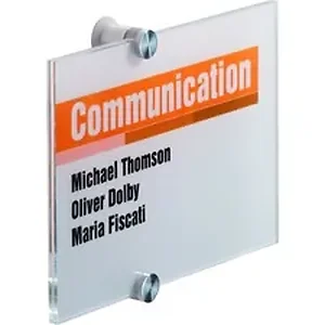 Crystal Signs provide stylish interior signage that can be updated instantly whenever tenant, faculty or staff changes occur. Transparent design allows straightforward edits and updates. Each sign includes standoff posts, two acrylic panels, two microperforated Mylar inserts, mounting hardware and a template for wall mounting. Included laser-printable Mylar inserts are sized for an exact panel fit and are microperforated for a clean tearing with no scissors needed. Refills allow you to create new messages effortlessly using Durable's free online software.