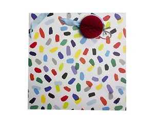This medium white gift bag features a unique paint printed design in assorted colors, adding a vibrant touch to your gift presentation. Perfect for birthdays, holidays, or any special occasion, this bag is both stylish and practical.