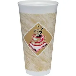 Gourmet foam cup features Thermo-Glaze technology to keep your beverages at their proper temperature. High-density design holds either hot or cold beverages while keeping the exterior comfortable to the touch. Coffee-themed design incorporates a subtle color-coding system to help customers and employees identify the correct cup size. Foam cup is designed for use with Dart 16SL, 16FTL, 16FTLS, 16EL, 16ELBLK, 16RCL, 16RCLBLK, 16LCD and 16LCDH lids (sold separately).