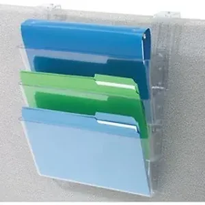 Partition wall-pocket system features three letter-size filing pockets. Use the included EZ-Link pins to hang multiple pockets together from one set of partition brackets. Linked pocket height expands from 14" to 19". Three-pocket system includes two brackets for mounting on standard partitions, EZ-Link pins and mounting hardware (screws, magnets and hook-and-loop closure).