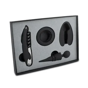 This deluxe 4-piece wine tool set is an essential addition for any wine enthusiast. It includes everything you need for a complete wine experience—from opening to storing wine. Packaged in a sleek black box, it also makes a wonderful gift.
