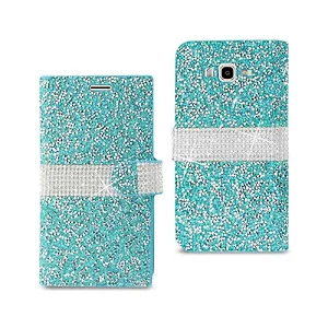 Samsung DFC02-SAMJ7BL Gorgeous Blue Rhinestone Wallet Case for Galaxy J7